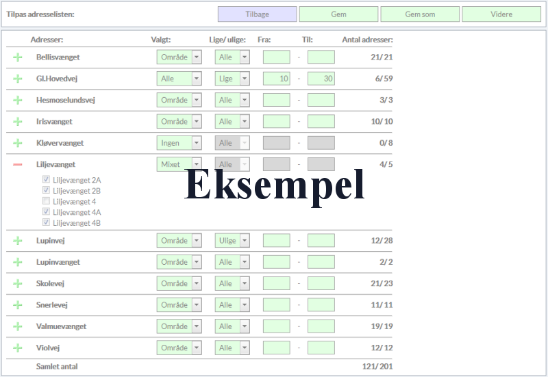 I kan hele tiden følge status over hvor antal valgte adresser.